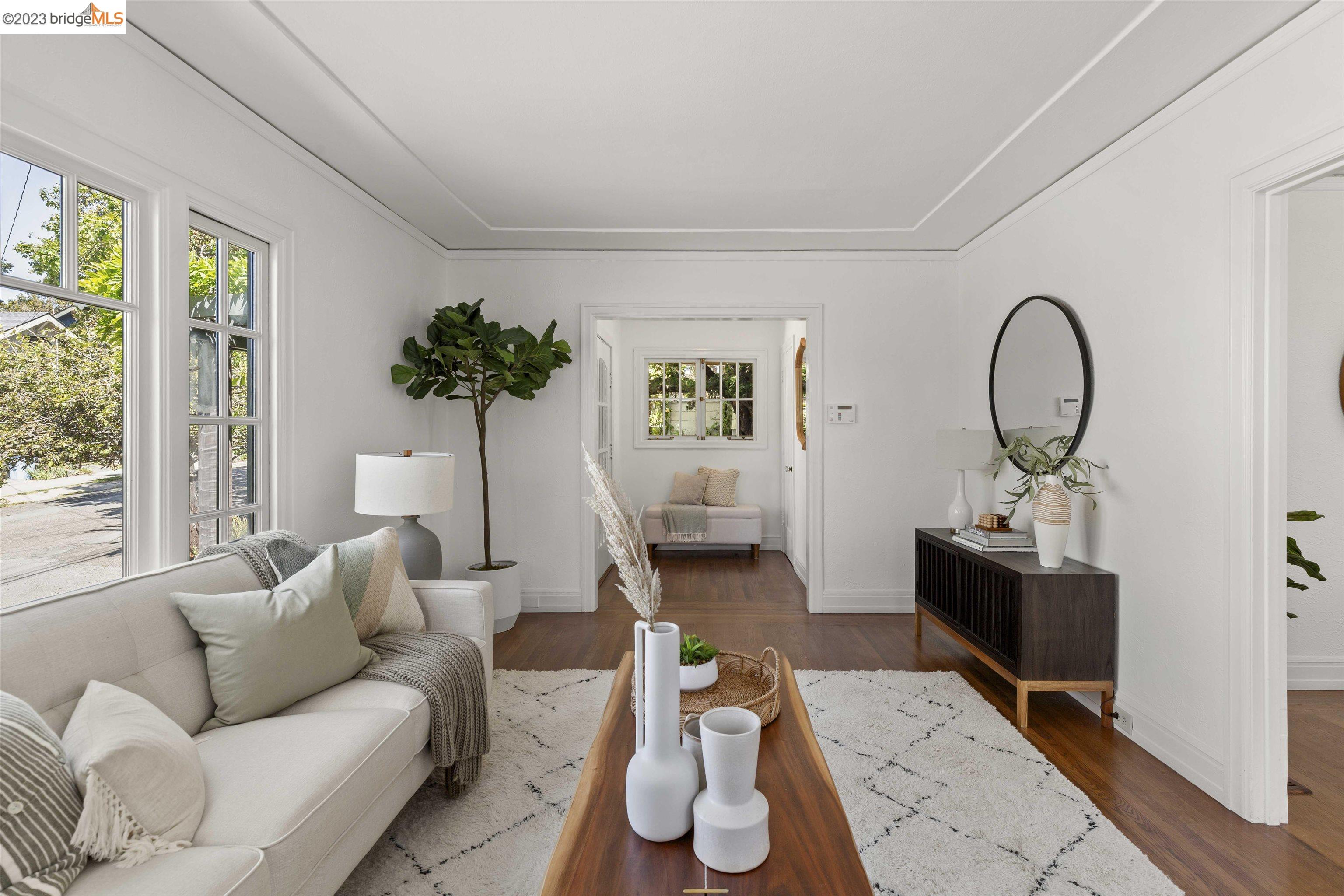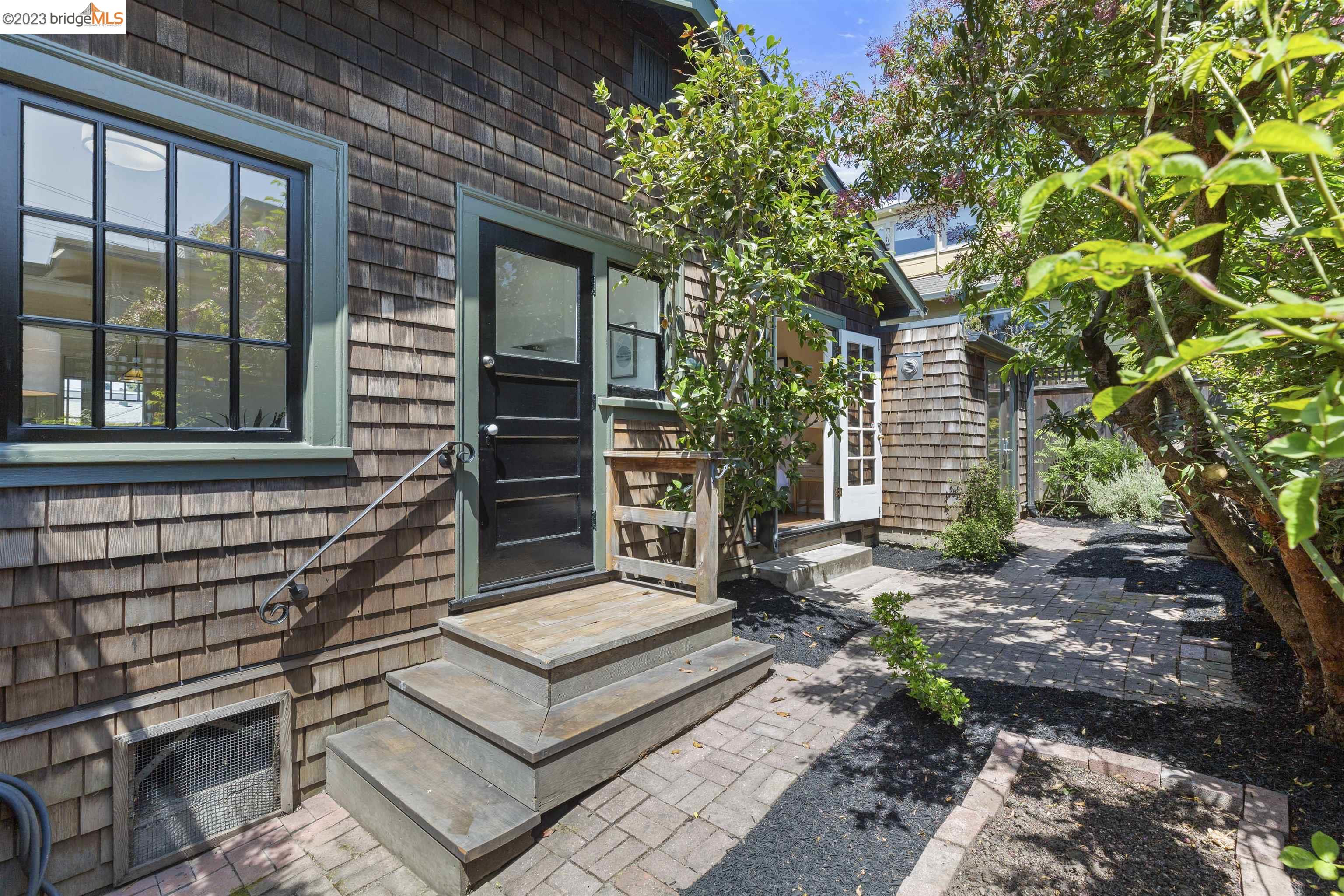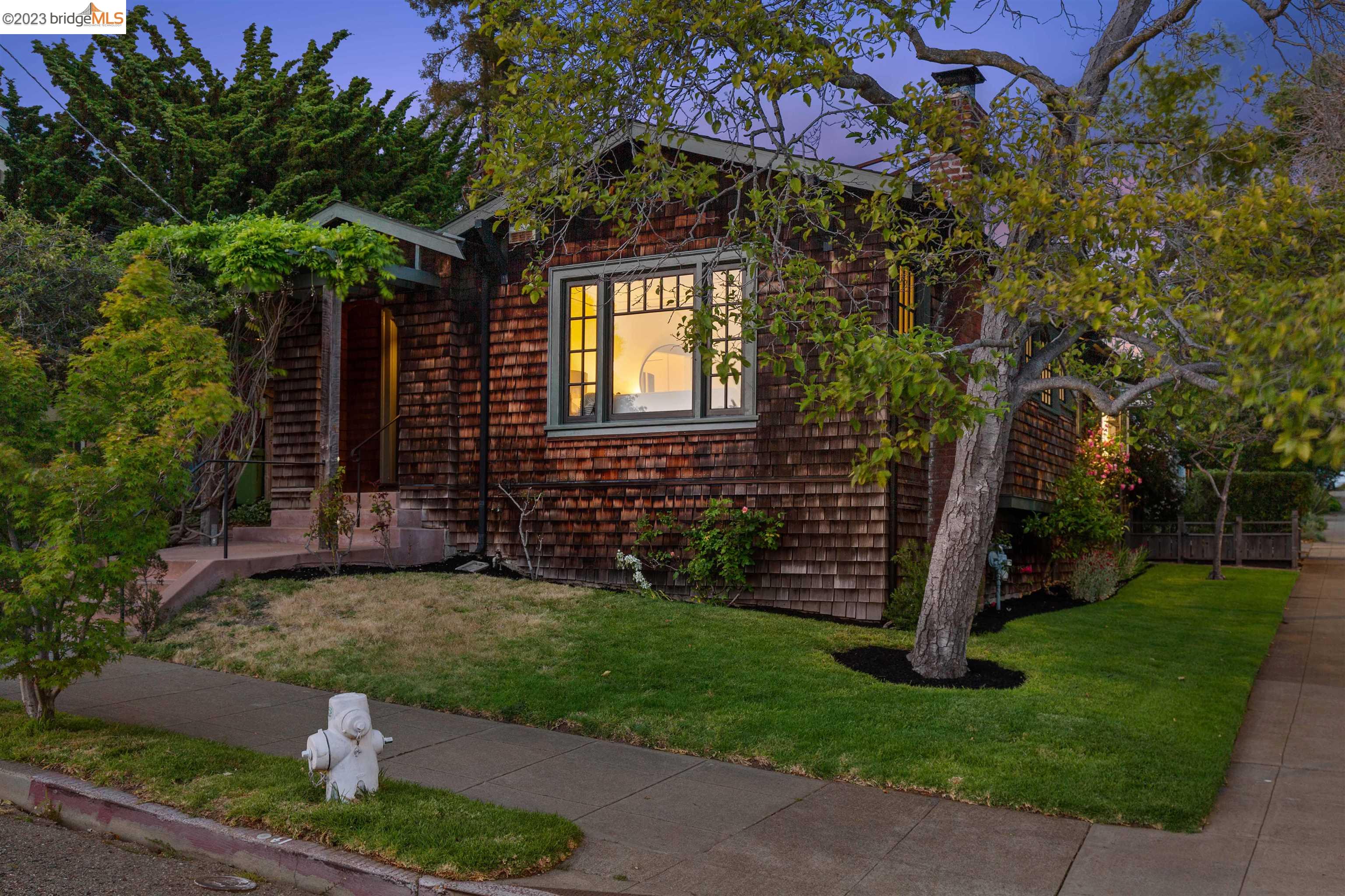 Owned since 1985 by Berkeley's David Lance Goines, this charming 1923 brown-shingled craftsman is quintessential Berkeley! Inside, an abundance of original details, including oversized baseboards, picture trim moldings, and period light fixtures. Set on a corner lot & wrapped with a green lawn. The entryway is convenient for coats & keys. From there, wood floors & original windows add richness. The living room features a fireplace. Spillover from the living room to the dining room which has a fresh coat of paint paired with the original light & built-ins. Both bedrooms are served by a refreshed bathroom: new vanity, light & modern mirror. The shower has been retiled & the historic tile floors stay! A kitchen is as cute as can be-- it's minimalist in design, with maximum storage. While the Wedgwood stove is the star of the room, high-quality cabinets impress. Adjacent is a breakfast nook. The laundry room serves as access to the backyard as well as a pantry. In the yard, a deck, mature trees, foliage, old bricks & fountain statue. Has a finished garage; continue using it as an art studio or modify to park here again. Don't miss your chance to own a piece of Berkeley history in one of its most desirable neighborhoods, Northbrae.