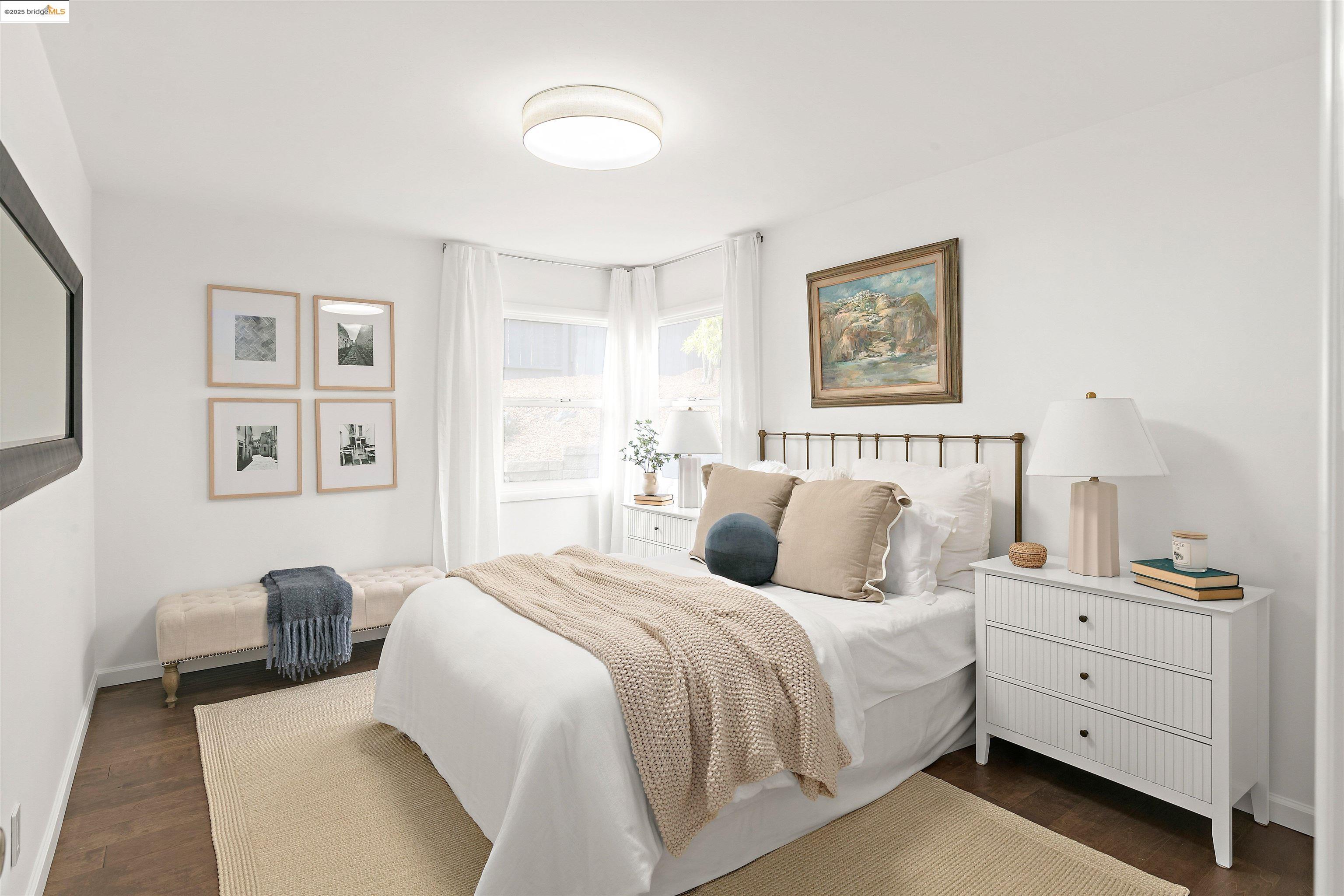 Welcome to 5 Arlington Ave., a beautifully refreshed Spanish-style home where charm meets modern living, all wrapped in sweeping San Francisco Bay views. Just moments from beloved Kensington Hilltop Elementary and the local village scene, this location puts you close to it all while feeling like your own hillside hideaway. Inside, bright, open living and dining spaces are framed by bay-facing windows and anchored by a sleek, modern fireplace. The updated kitchen is both functional and fun, with stylish countertops, a gas range, and plenty of room to cook, host, or both. Two sunny bedrooms and a designer-updated bath offer cozy, elevated comfort. Step outside to take in the layered outdoor spaces, from a BBQ-ready side deck to a terraced garden and view deck with front-row seats to the Bay. The newly hardscaped driveway, fresh paint inside and out, dual-pane windows, and updated lighting all add to the polish. With an attached garage (w/ level 2 EV Charger), extra parking, and rear access, plus easy proximity to parks, trails, and cafes--you really can have it all in Kensington.
